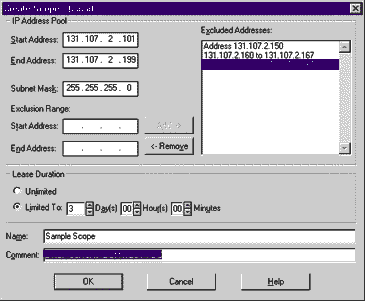 Казалось бы, для избыточности неплохо было бы иметь несколько серверов, обслуживающих одни и те же диапазоны адресов. Однако в NT 4.0 DHCP-серверы не взаимодействуют друг с другом. Другими словами, создать несколько серверов для одного и того же диапазона нельзя, поскольку они будут назначать одни и те же адреса. Надеюсь, в будущих версиях этот недостаток будет устранен. Иногда администратор сети с двумя серверами, каждый из которых обслуживает ее часть, может поделить между ними доступные IP-адреса. Таким образом, в случае сбоя одного из серверов по крайней мере у части пользователей сохранится возможность получения IP-адресов.