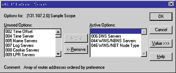 При выходе из диалога Create Scope возможно появление сообщения об ошибке No more data is available. Его можно проигнорировать. Созданный диапазон появится в окне DHCP Manager. Если вы его активизировали, изображенная справа от него лампочка будет гореть желтым цветом. Не волнуйтесь, если вы ввели диапазон 131.107.2.100-131.107.2.199, а в окне DHCP Manager появилось 131.107.2.0. Просто DHCP показывает последние восемь адресов, как ноль.